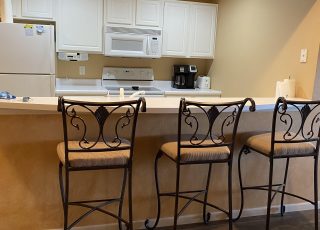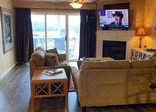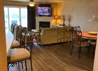 The deck overlooks the lake and includes furniture, seating for 4. The condo also features a full kitchen including microwave, dishwasher and refrigerator with ice maker. Washer and dryer are in the laundry room off kitchen. The condo has been custom painted and is contemporary in design. Master bedroom has a king bed and a private master bathroom. The second bedroom has a Queen bed with a pull-out sofa in living room.