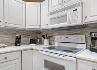 A newly updated beautiful full kitchen including seating for 6 and additional 4 bar stools at the breakfast bar, refrigerator with ice maker, dishwasher, microwave and smooth top range make this kitchen convenient for the vacationer!